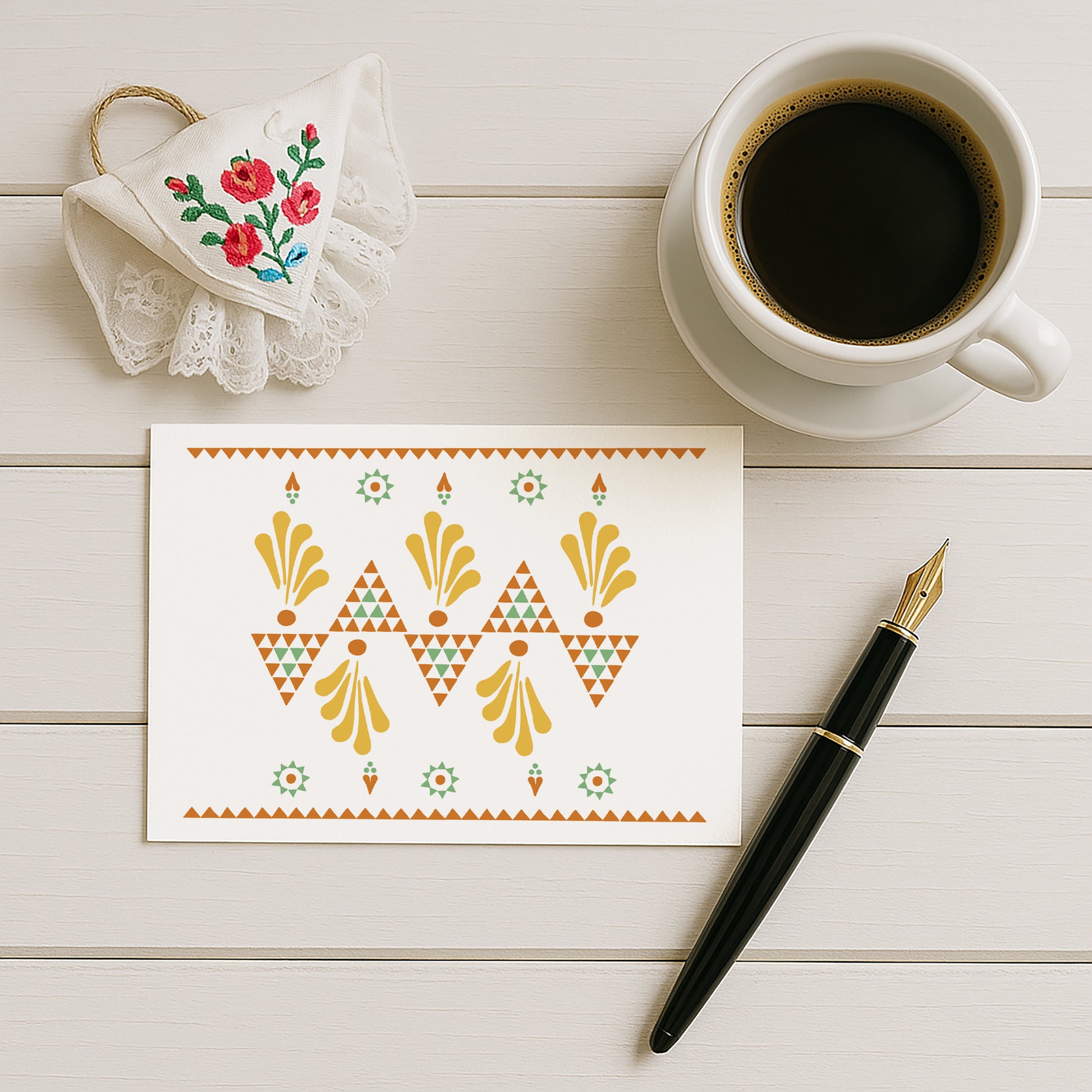 Das Set „Frühling & Blüte“ vereint zehn detailreiche Postkarten mit floralen und grafischen Elementen aus der sorbischen Volkskunst. Jedes Motiv bringt ein Stück Lausitzer Frühling auf Papier – mit blühenden Ornamenten, zarten Linien und leuchtenden Farben.