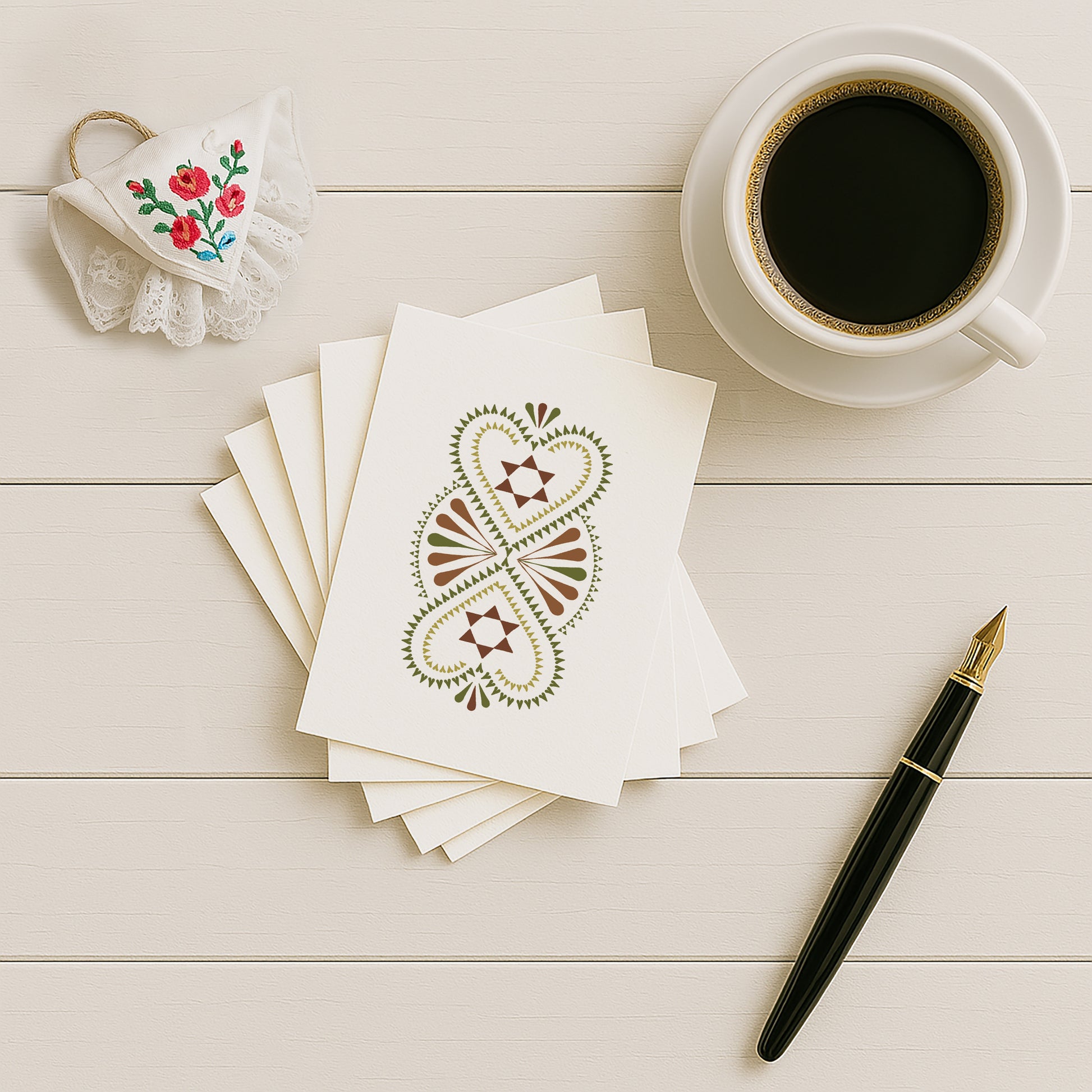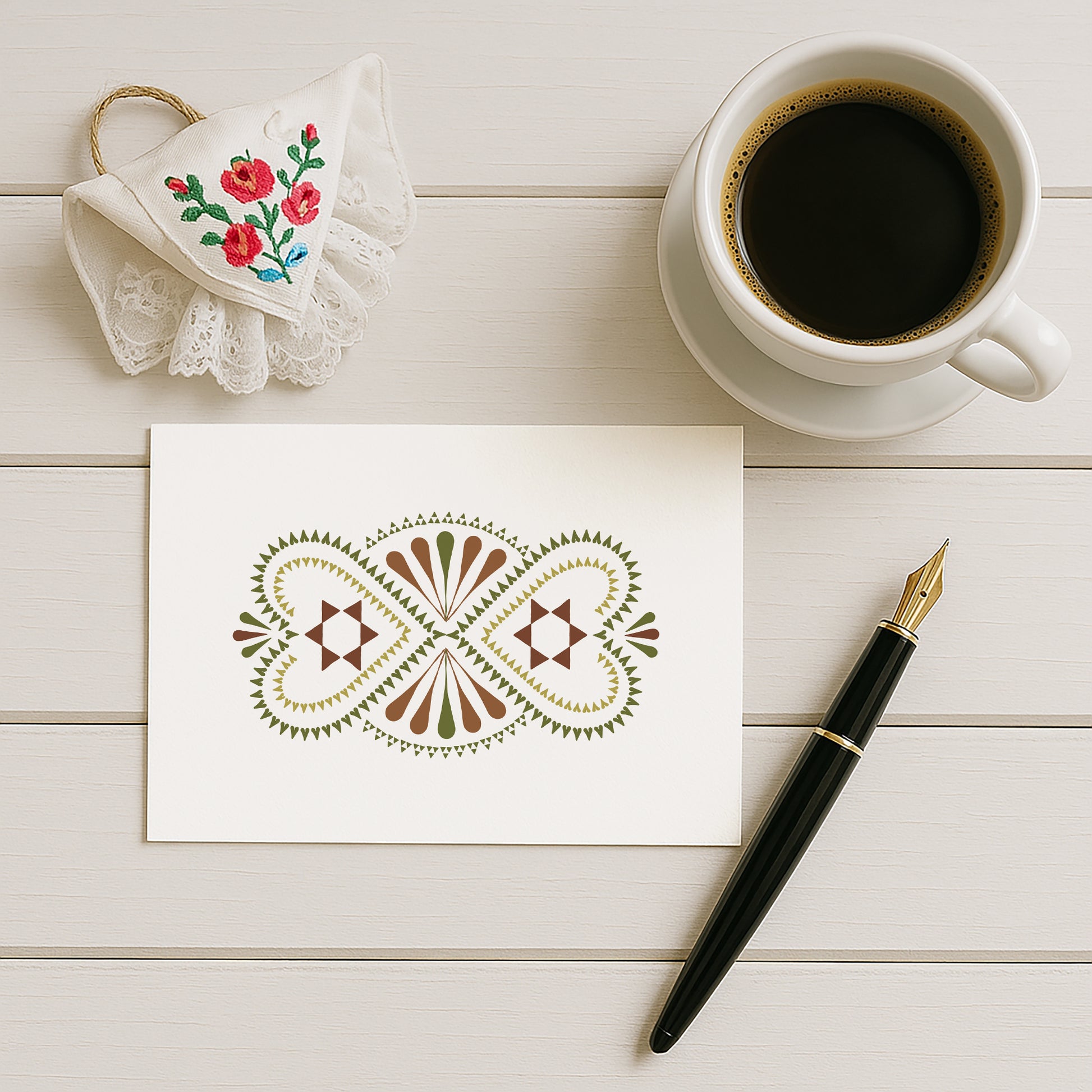 Das kunstvolle Design erinnert an die Symbolik der Unendlichkeit und steht für Heimat, Liebe und kulturelle Verbundenheit. Ideal als besondere Postkarte, als Geschenkbeigabe oder zur Dekoration.
